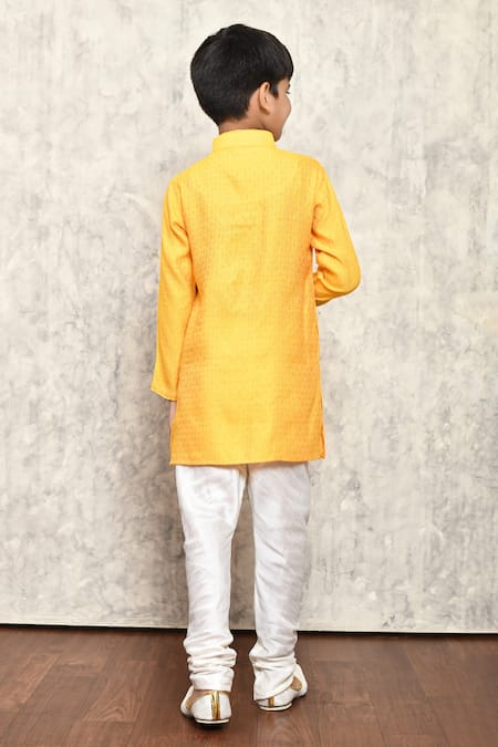 Yellow Jacquard Geometric Woven Kurta
